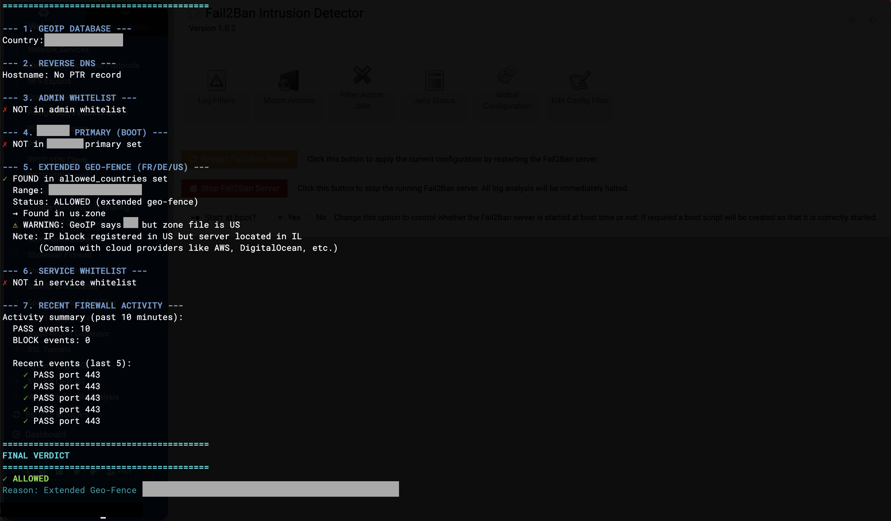 Nous avons assemblé plusieurs applications et scripts personnalisés dans une Suite de Sécurité Entreprise qui offre contrôle et visibilité complète du trafic atteignant votre infrastructure. Vous décidez quels pays ou IP autoriser, lesquels refuser, tandis que nos outils de surveillance affichent les connexions en temps réel avec balises géographiques et résolution DNS. Notre outil d'analyse comportementale identifie les tentatives par force brute et les schémas d'attaque provenant des pays autorisés. Conçu pour les systèmes Linux, le système inclut des applications de maintenance automatique qui mettent à jour les plages IP mensuellement, appliquent les modifications via chargement progressif pour éviter les échecs, et maintiennent des protocoles d'accès d'urgence garantissant que vous ne perdez jamais le contrôle. Une suite spécialisée construite à partir des leçons apprises dans des environnements hautement hostiles.